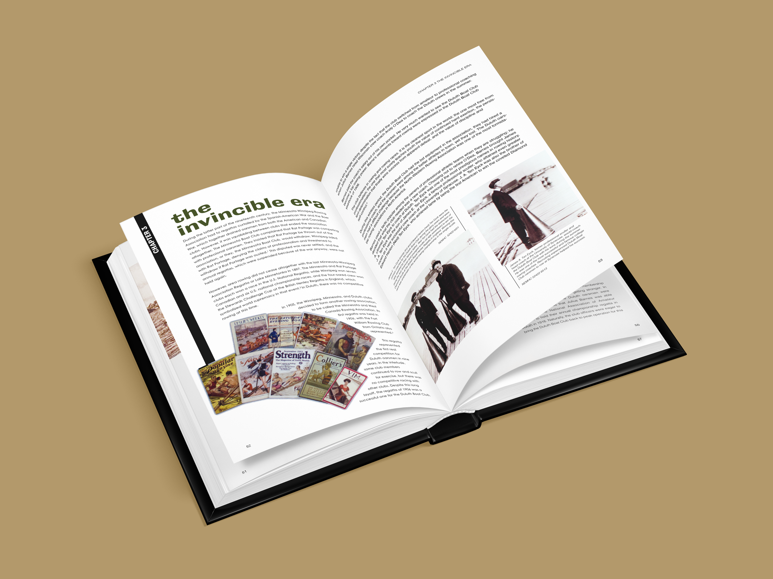 Interior layout of book titled, Invincible: History of the Duluth Boat Club